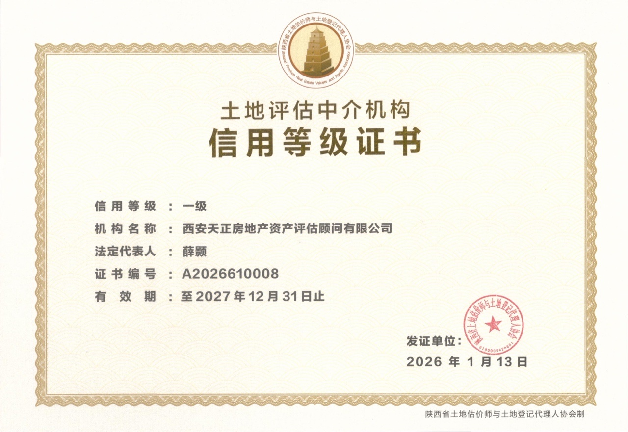 荣评中估协2026年度全国土地估价机构信用评价准A级